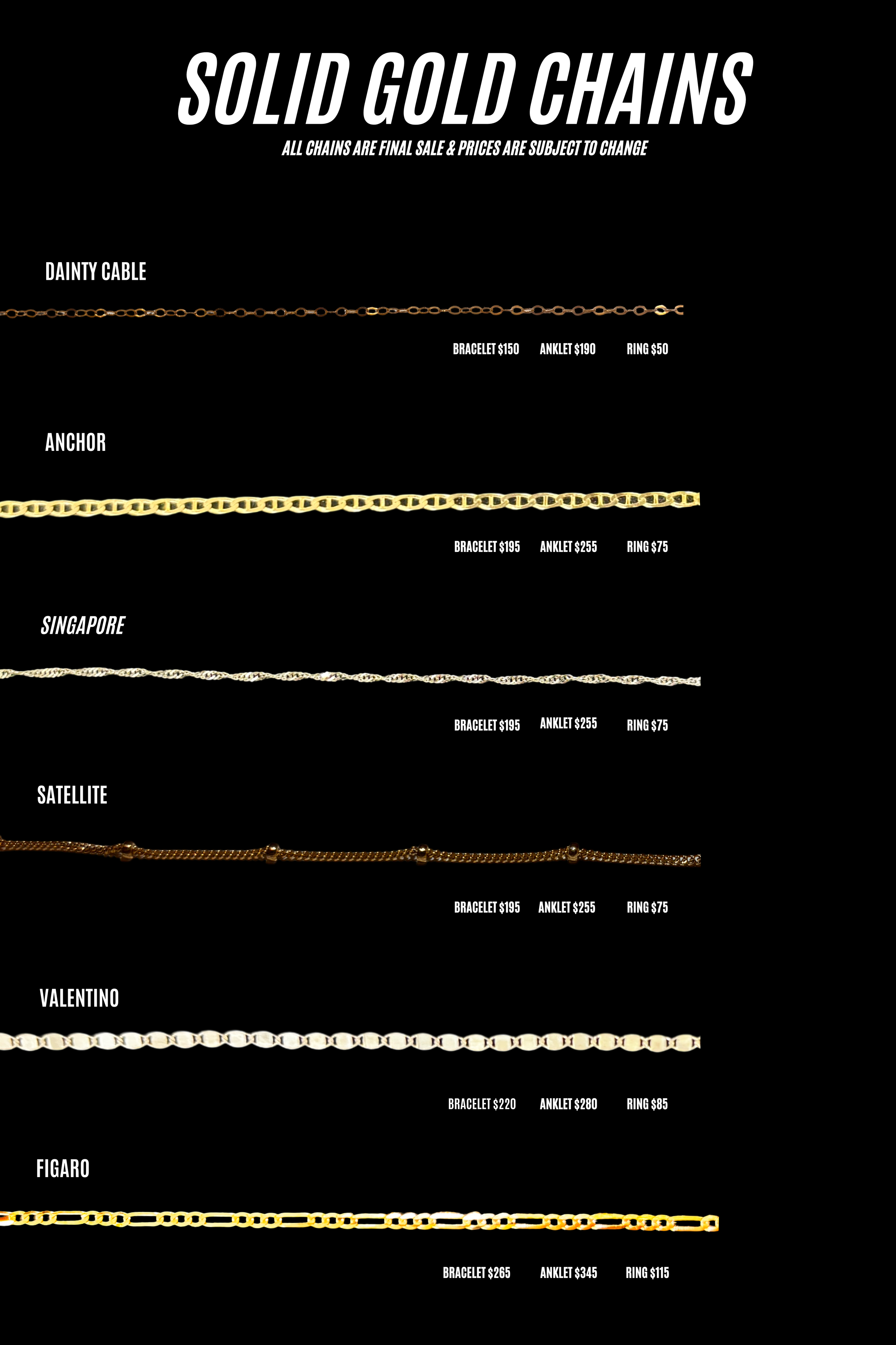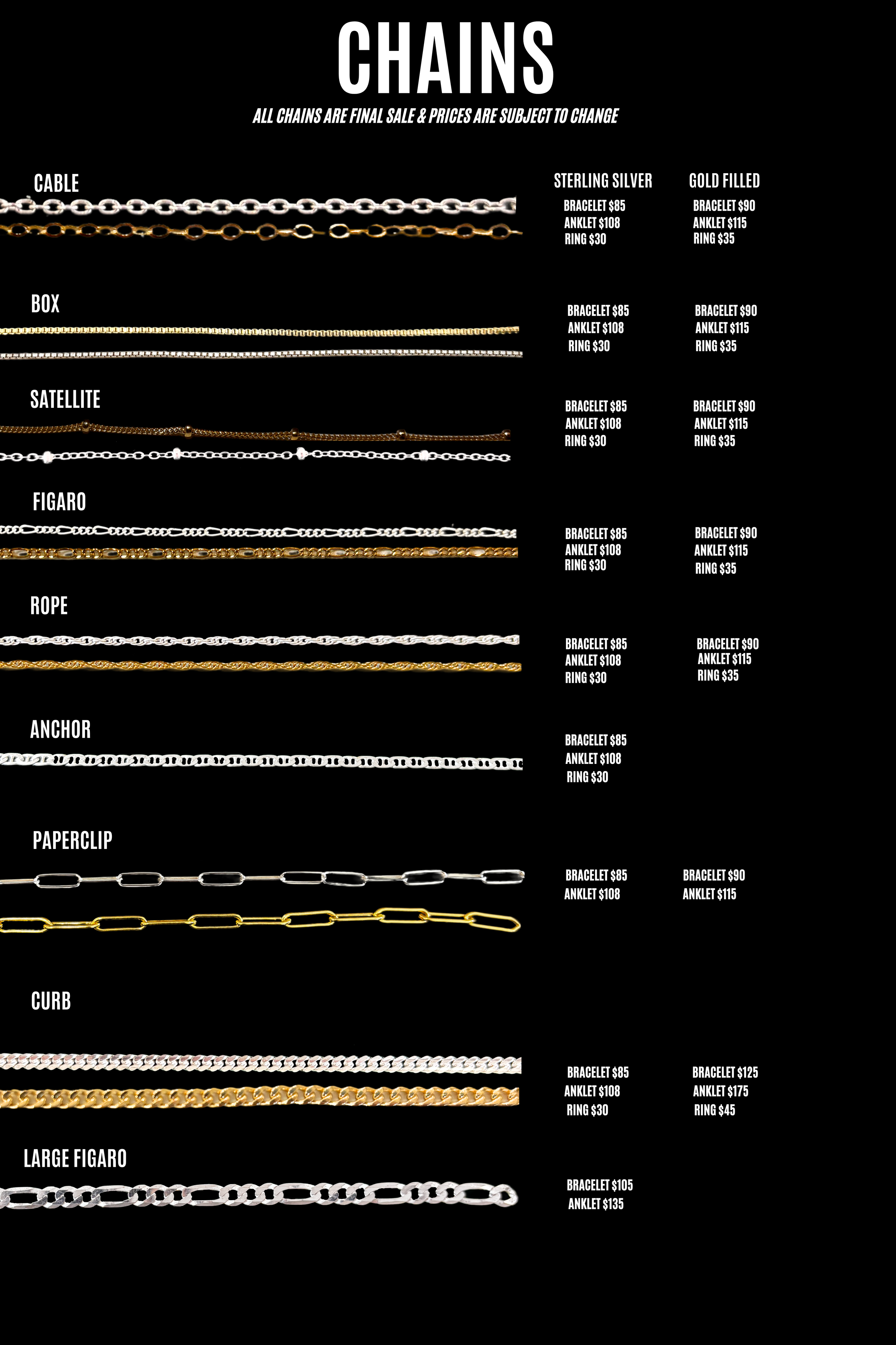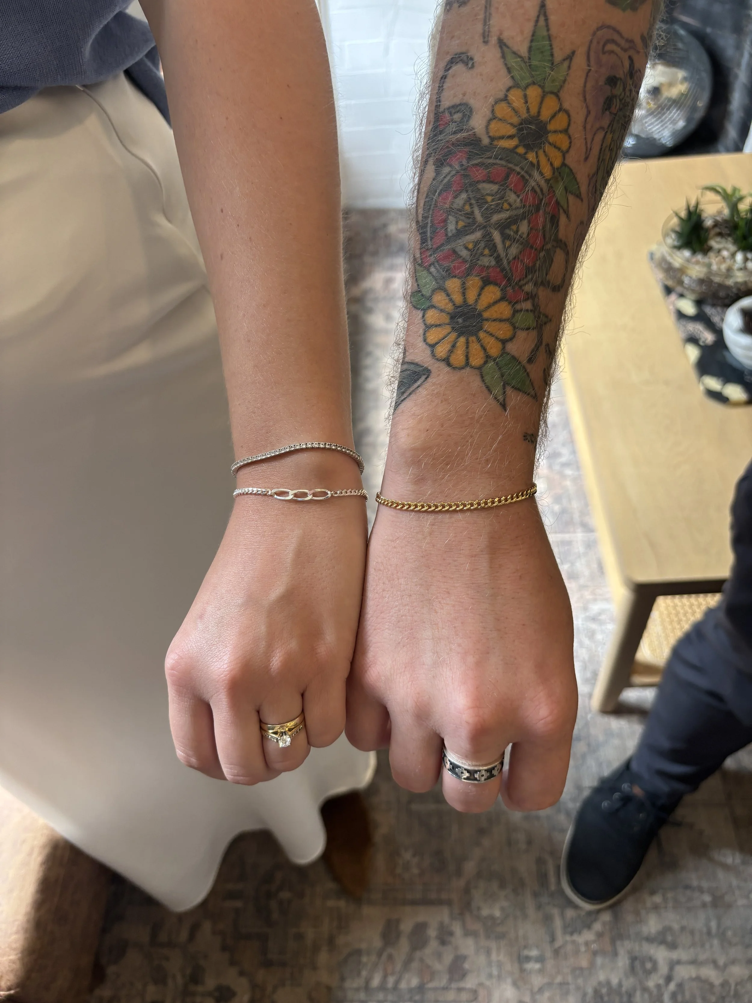 At The Heavy Metal Club, we guide you through the process of creating your custom tailored forever jewelry. Jewelry options are bracelets, anklets, rings and necklaces